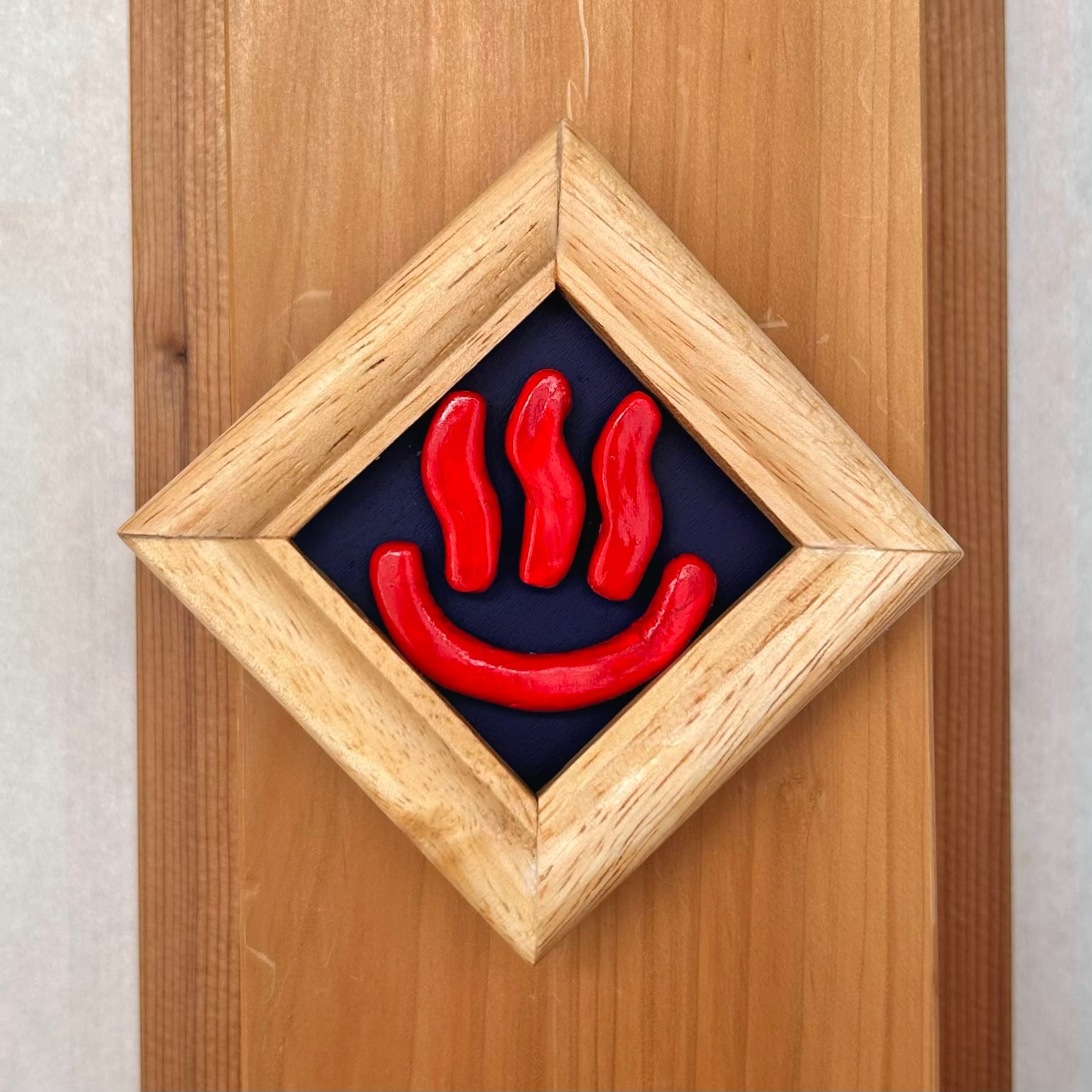 ※そのまま正方形型として吊り金具で壁に取り付けたい場合は、正方形型としてマークが真っ直ぐになるように制作しますので、ご購入の際にご連絡ください。